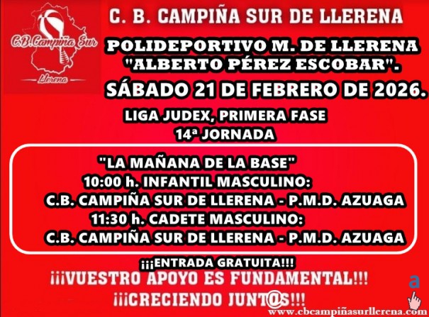 C.B. CAMPIÑA SUR DE LLERENA, PRÓXIMO FIN DE SEMANA: CONVIVENCIA MINIBASKET ALEVÍN, JORNADA DE COMPETICIÓN JUDEX-FEXB Y DEL TROFEO DIPUTACIÓN DE BADAJOZ SÉNIOR 2025/26. TENDREMOS "LA MAÑANA DE LA BASE" EN EL "ALBERTO PÉREZ". ¡NO FALTÉIS!